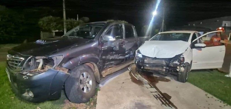 Batida entre Hilux e Fox deixa três feridos, incluindo adolescentes sem cinto