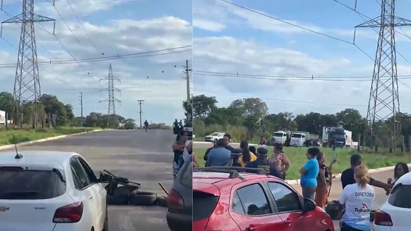 Vídeos registrados por populares mostram o trânsito parado e motoristas aguardando a liberação da pista. Em uma das gravações, uma pessoa relata que a via apresenta buracos e que a situação tem causado transtornos frequentes.