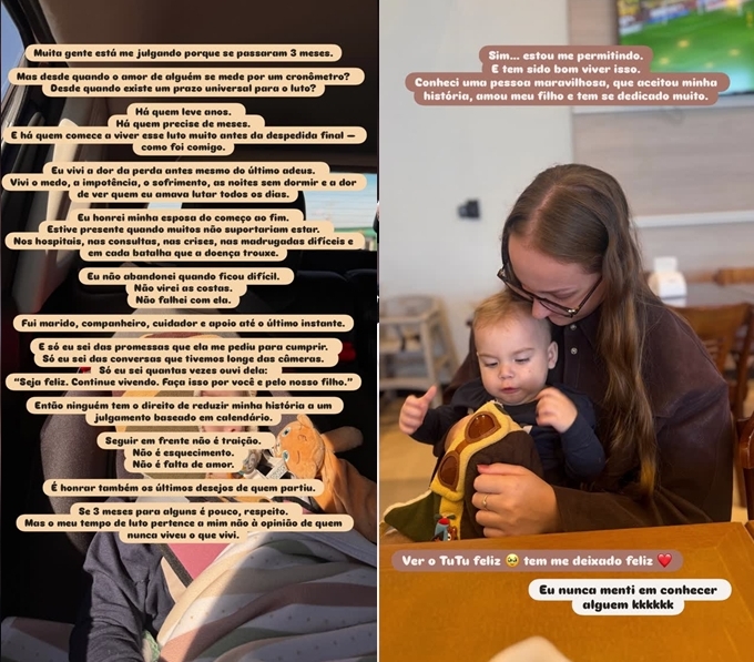 “Muita gente está me julgando porque se passaram três meses. Mas desde quando o amor de alguém se mede por um cronômetro? Desde quando existe um prazo universal para o luto?”, declarou.